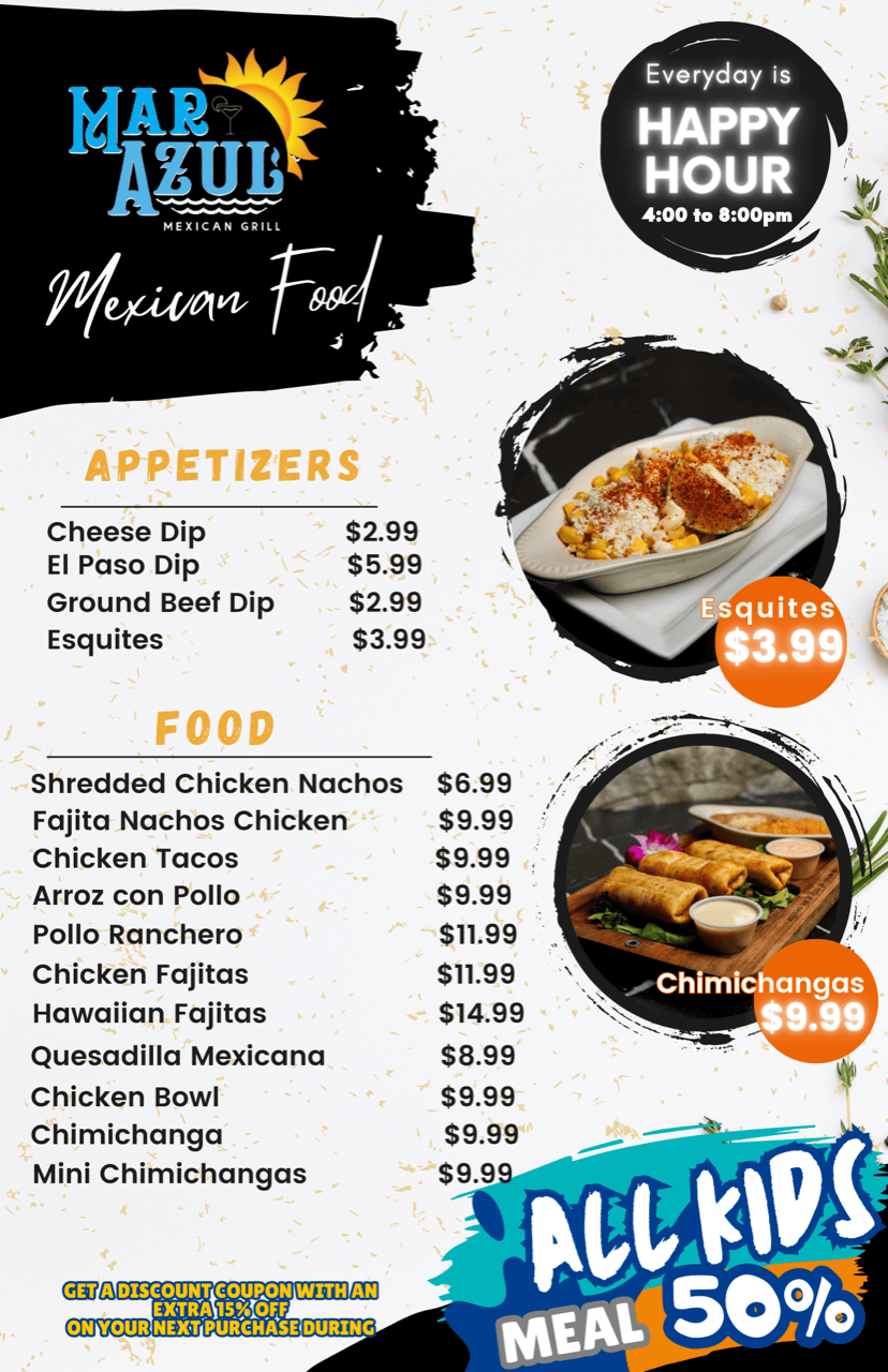 At Mar Azul Mexican Grill, our goal is to serve the most delicious and authentic Mexican food in town. Based in Columbus, OH, Mar Azul has your favorites including burritos, tacos, and nachos, but we also have some outstanding dishes we can't wait for you to try! Stop by 5940 Chantry Dr to get a taste of Mexico!